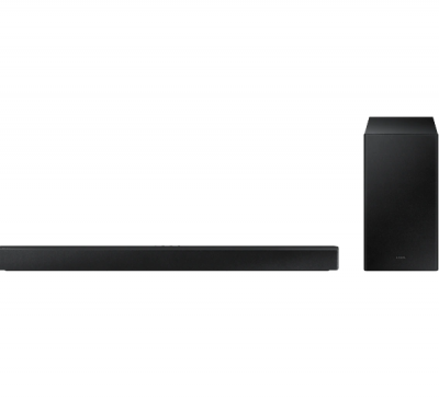 - Loa thanh Samsung HW-B550 hài hòa trong không gian nội thất hiện đại với thiết kế đơn giản và sang đẹp, màu đen thuần khiết, tối ưu cả khi lắp đặt để bàn hay treo tường gọn gàng.