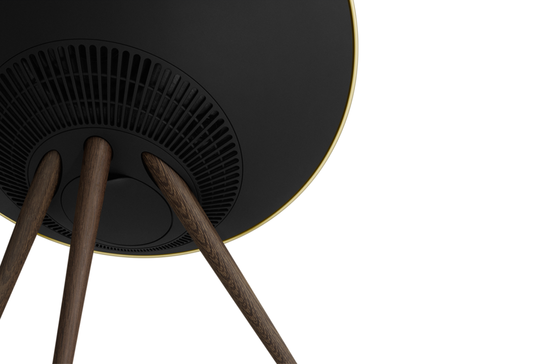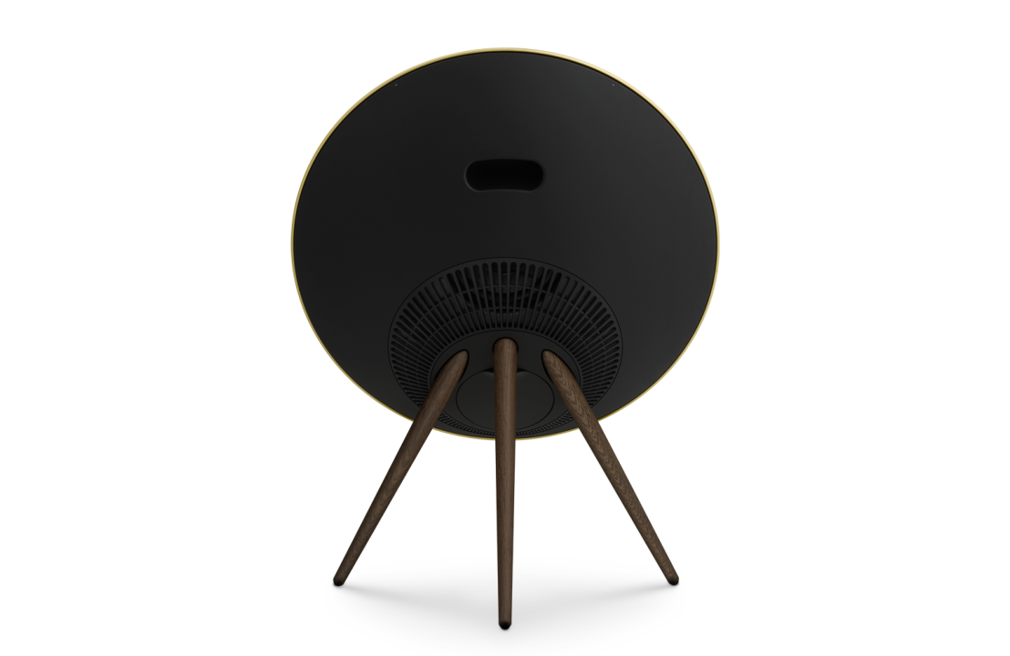 Bang & Olufsen Beoplay A9 MK4 (Thế hệ thứ 4) phiên bản màu đen viền vàng chân gỗ, hàng chính hãng mới, giá tốt nhất thị trường. Mã SP : BA9MK4BRA — Giá : 69.600.000đ