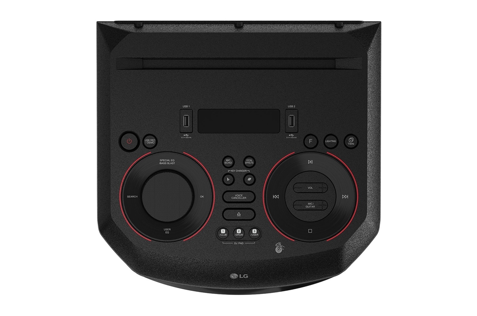 Loa kéo LG nhờ bàn hiệu chỉnh DJ - DJ Pad có các công cụ và hiệu ứng âm thanh tích hợp gồm 3 chế độ: Club, Drum, User. Trong đó, với chế độ User bạn có thể tạo hiệu ứng âm thanh (mẫu) thông qua một ứng dụng Xboom, sau đó đồng bộ hóa các mẫu đó và phát ra loa dễ dàng.