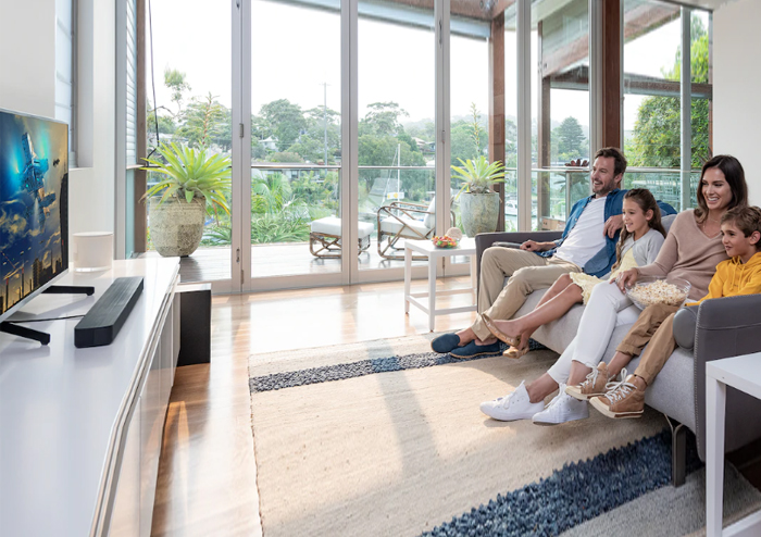 Một nút bấm, mọi âm thanh – chỉ cần chọn chế độ âm thanh phù hợp rồi thưởng thức. Bạn có thể chọn chế độ Tự động, Tiêu chuẩn, Rạp chiếu phim, Âm nhạc, Ban đêm và Thoại rồi điều khiển âm lượng loa subwoofer cho trải nghiệm thêm lý tưởng.